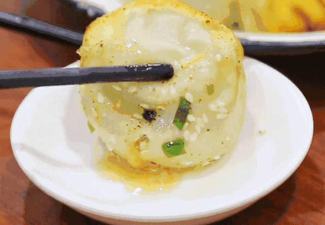 上半部分有黃澄澄的芝麻和翠綠的蔥花,下半部分有金黃脆香的面皮,里面有鮮嫩適口的餡料,聞起來清香濃郁,吃起來唇齒留香——這說的就是生煎。