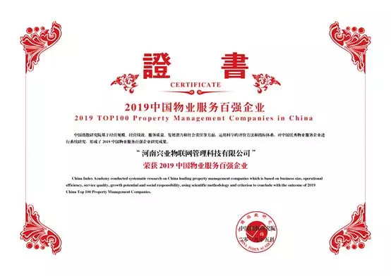 5月24日,由中國指數研究院主辦的“2019中國物業服務百強企業研究成果發布會”在京舉行。繼2016、2017、2018年之后,興業物聯再次榮登榜單,位居第67名,連續四年排名呈階梯式上升。