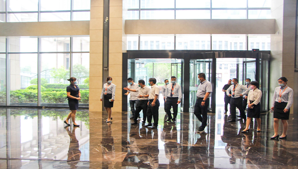 然后調研組一行又參觀了物業服務中心、員工宿舍、工程調度中心、遠程監控指揮中心、設施設備房等,詳細了解興業物聯管理與服務工作,并對興業物聯高品質的物業服務和支持企業復工復產的工作成果給予了高度肯定。
