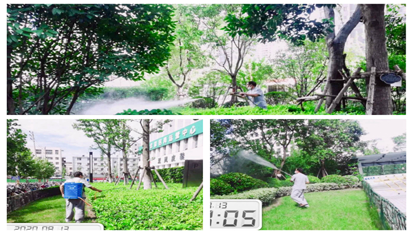 物業人員頂著高溫,采用專業工具和藥液在指定區域廣泛消殺蚊蟲,特別是針對垃圾桶周邊、墻角、易積水處、綠化帶樹葉茂密處等容易滋生蚊蟲的地方強化噴灑藥液,做到不留死角。