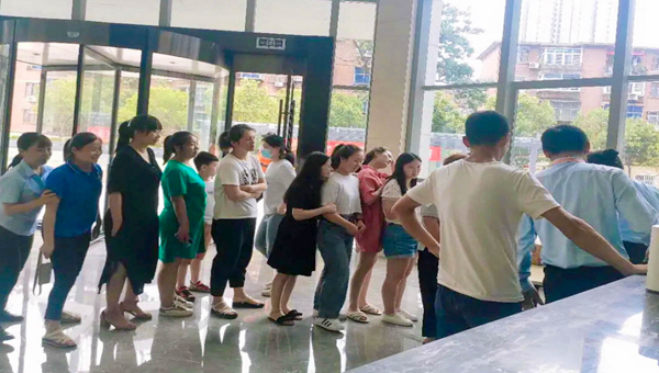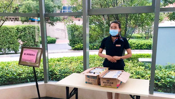 當天中午,寫字樓辦公人員外出就餐回來,在大堂排著長隊,每人免費品嘗“降溫”冷飲,恰似夏日里的陣陣涼風,沁人心脾。