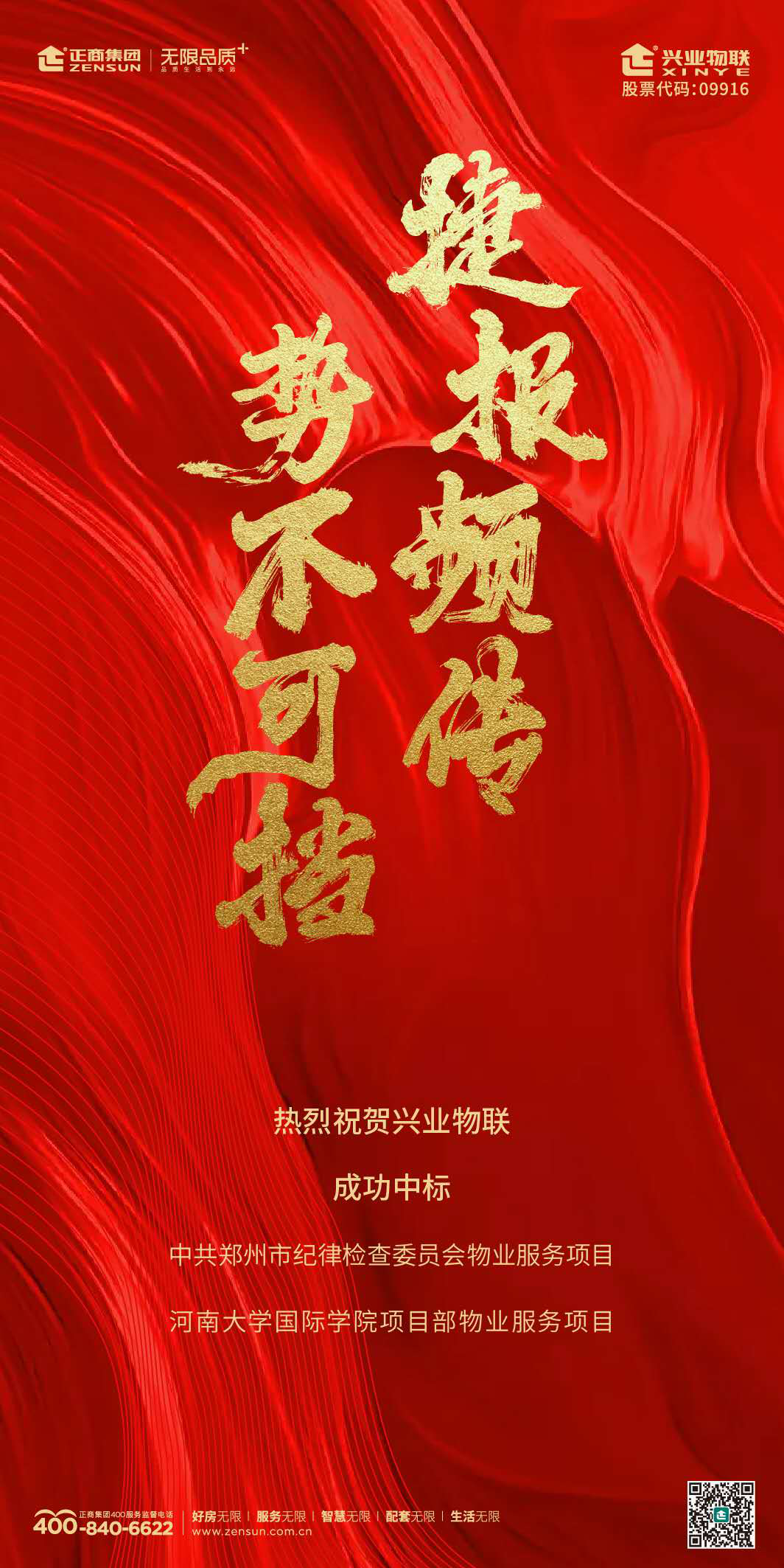 協議簽訂后,興業物聯副總經理胡向前、市場拓展部總監劉冰、市場拓展部經理蔣麗等,參加接管進駐前對接會,認真聽取合作單位工作具體要求,確保后續各項管理標準、規章制度、人員安排合理到位。 以上項目順利中標,是繼河南省社會主義學院、中共鄭州市紀律檢查委員會、鄭州市人民檢察院、鄭州東興環保能源有限公司后,興業物聯在提供高品質物管服務道路上的又一次實踐,也是在非住宅物業發展中的重要進程。 自今年3月份興業物聯在港交所成功上市以來,為加快市場項目拓展,公司秉承“真誠 專業 進取”的品牌價值觀,主要致力于股權收購、物業全委、顧問咨詢、戰略合作、合資公司等合作模式,以爭創優質服務為突破口,樹立業界標桿,用高品質、高效率的服務質量回饋業主、回饋社會!