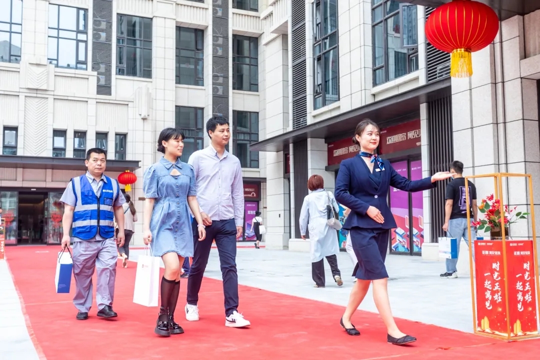 一路鋪就的紅毯、花團錦簇的迎賓花柱、精心布置的景觀小品,為園區(qū)平添了一份喜悅與生機。