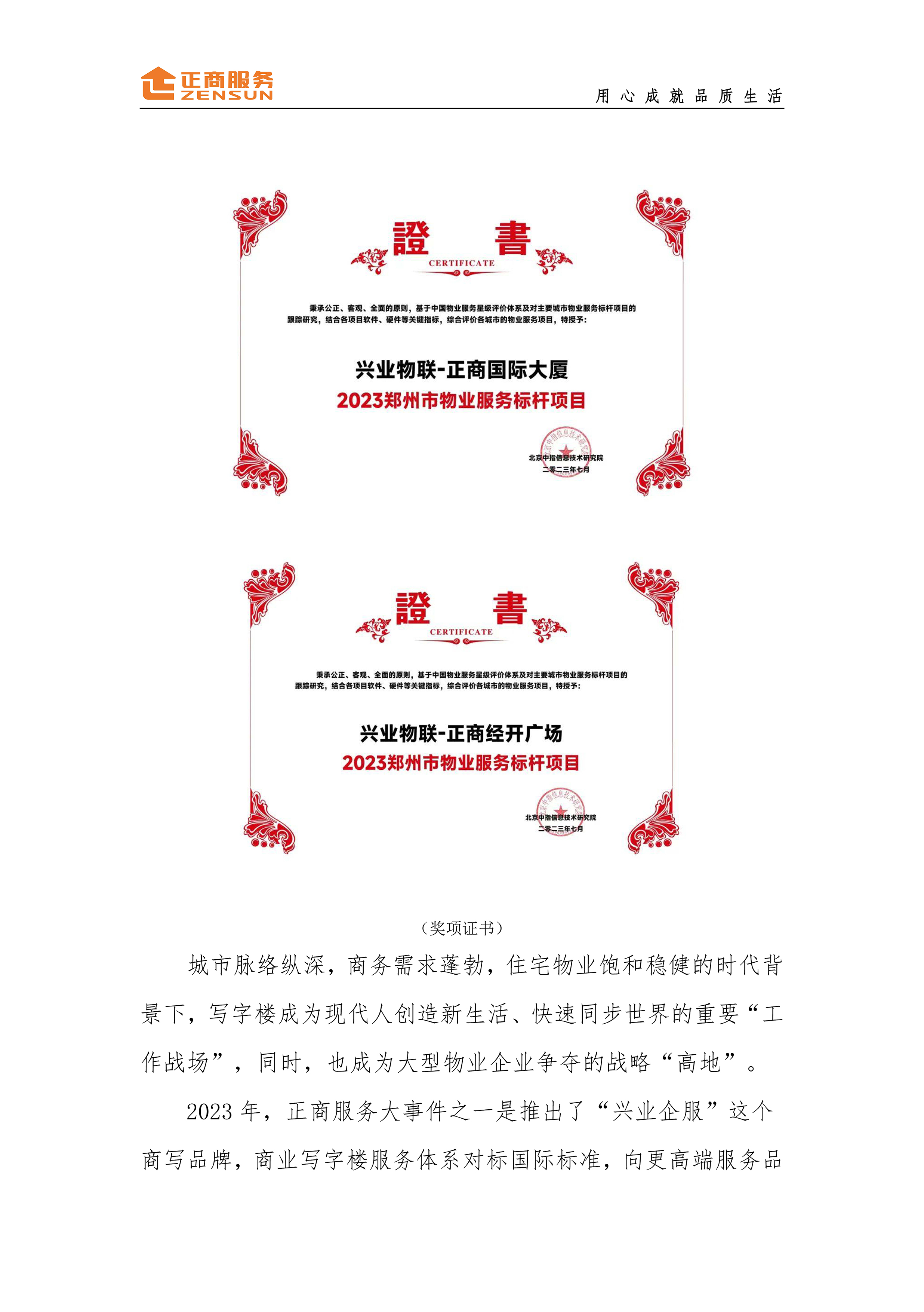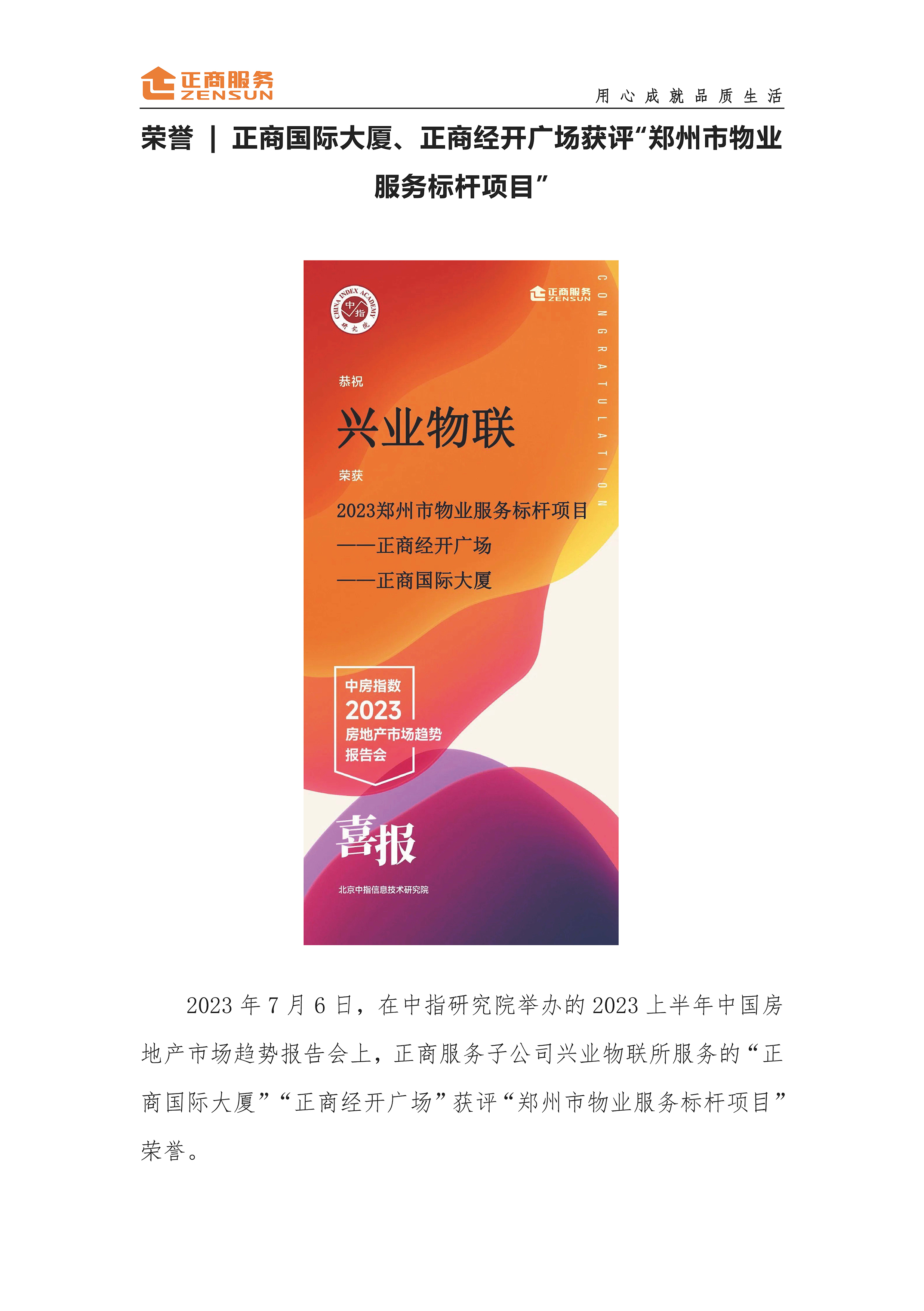 榮譽(yù) | 正商國際大廈、正商經(jīng)開廣場(chǎng)獲評(píng)“鄭州市物業(yè)服務(wù)標(biāo)桿項(xiàng)目”